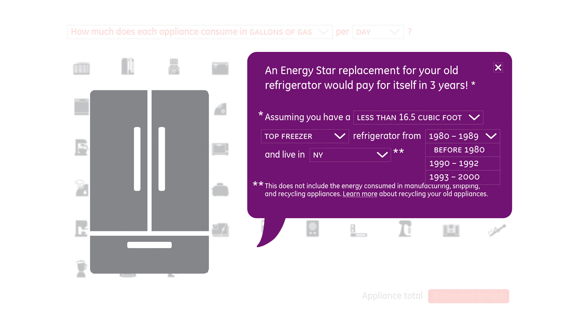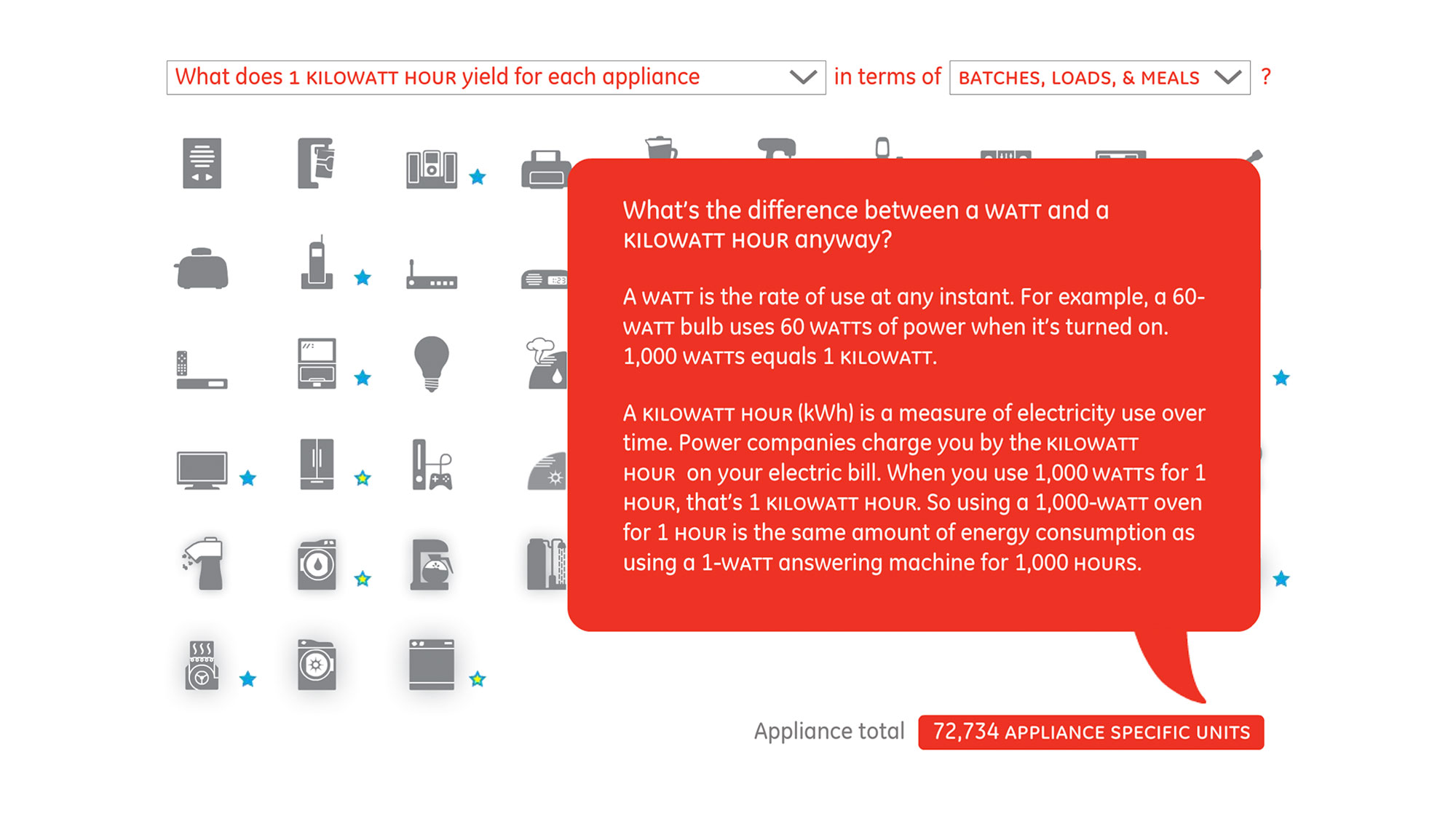 Our approach was very much about understanding the kilowatt, the main unit of energy consumption. We converted kilowatts to dollars, gallons of gas (a relatable unit of energy consumption) and what we called "appliance specific units."