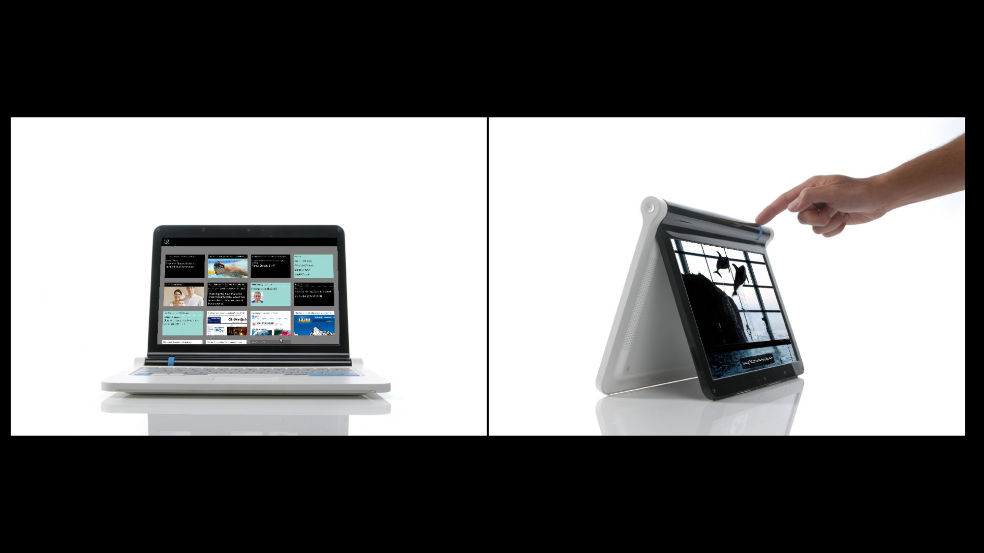 More than one year before Apple launched the iPad, the founder of Aquent (John Chuang) approached us (at Pentagram) to design an identity and UX for a new home-focused netbook device. Abbott Miller designed the identity, and Lisa Strausfeld and her team at Pentagram designed the UX.