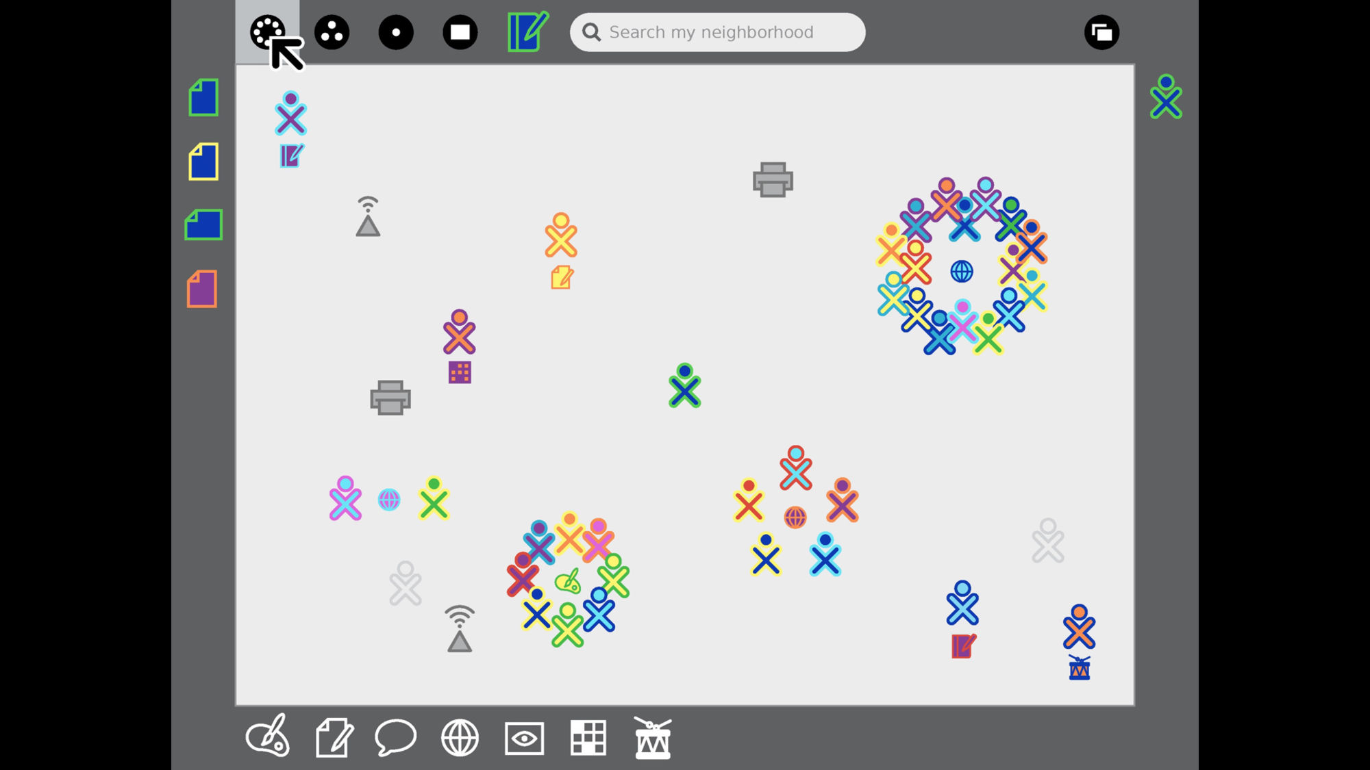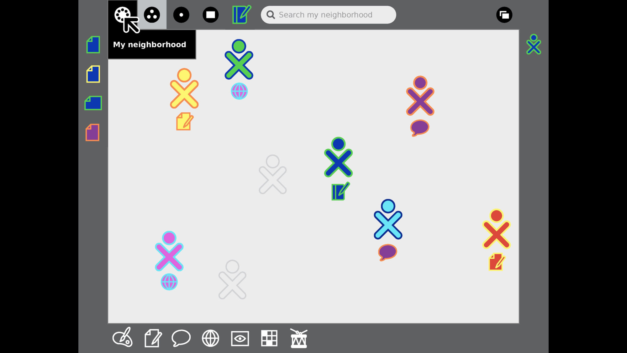 The interface, named Sugar, uses an abstracted spatial navigation metaphor, an extension of the familiar desktop metaphor, for intuitive navigation that makes the most of the laptop’s networking capabilities. Children can move through 4 levels of view − Home, Friends, Neighborhood, and Activity.