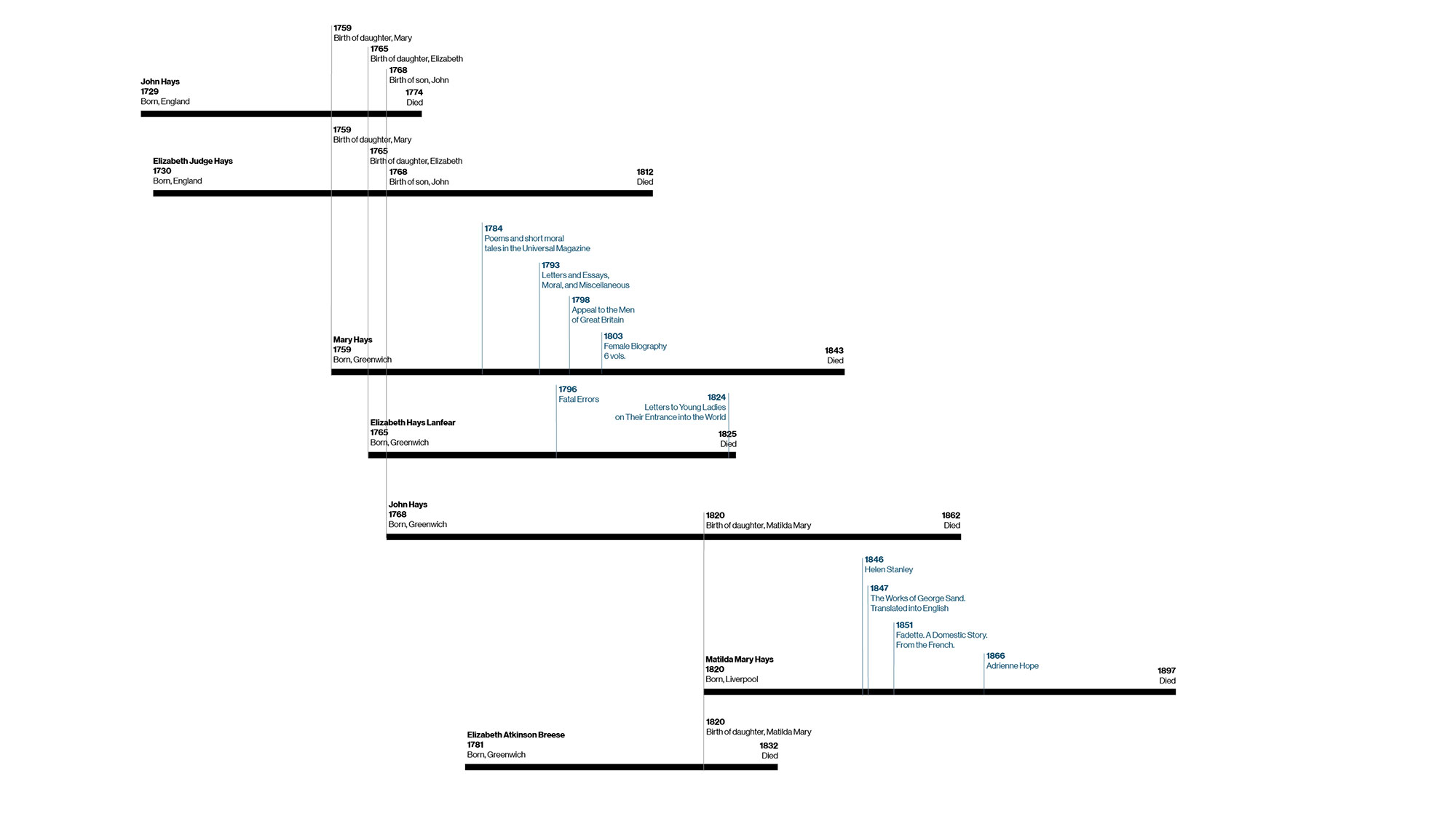 Our first immersive 3D time-based network visualization works with content from The New Historia, a collection of historical women and their work based on an updated version of Mary Hays’ Female Biography collection (first published in 1803, and updated in 2014). The information space is built dynamically from a Google Sheet of nodes (people and work) and their relationships.